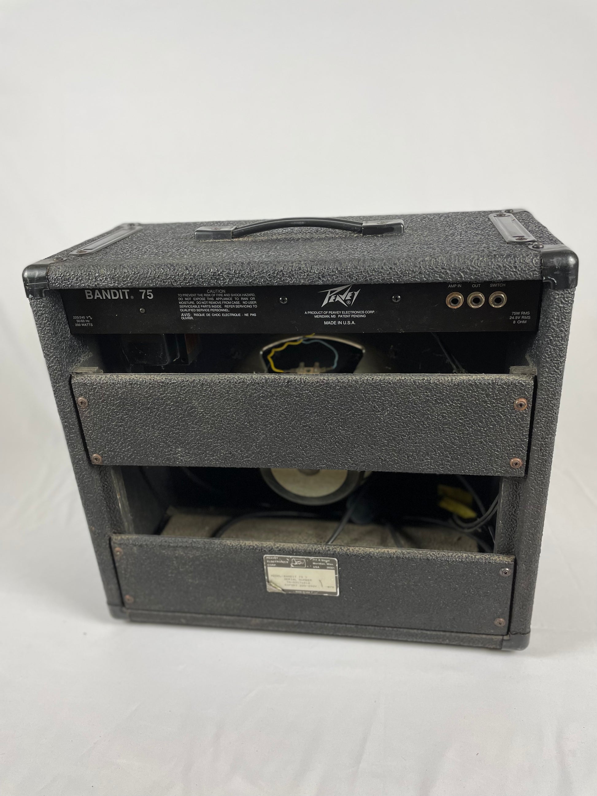 This pre-loved Peavey Bandit amp is in good working and physical condition. The sound is crisp and clean, and thanks to it's 75 watts produces plenty of noise for band environments. The cosmetic condition is good, with some scuffing, scratches, and other minor player wear.