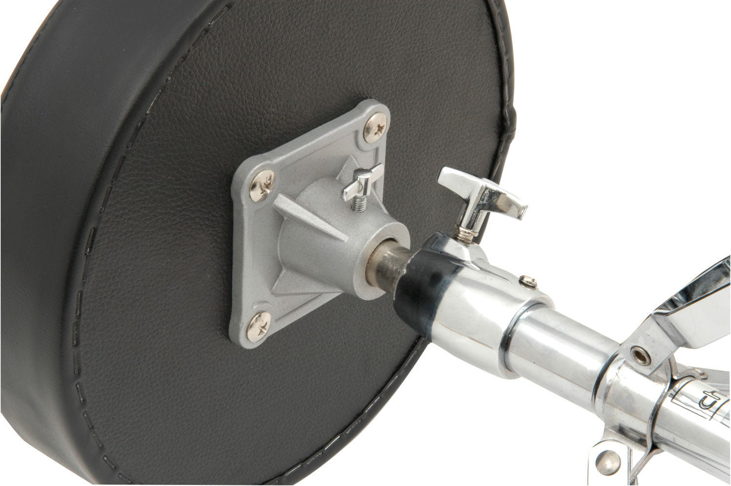 Heavy duty drum thrones with deep padded seats and black vinyl covering. Folding double-braced tripod base with screw-style height adjustment.