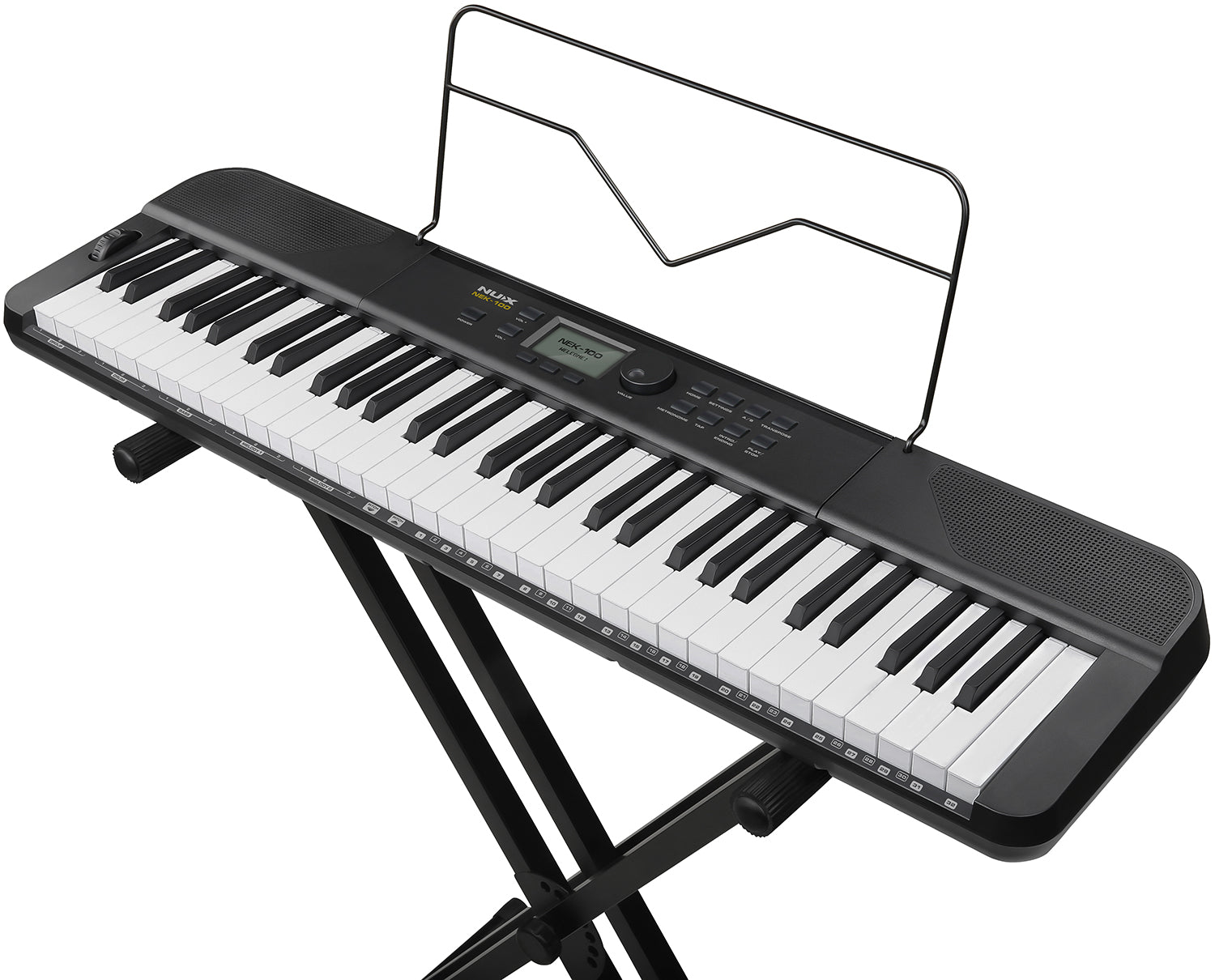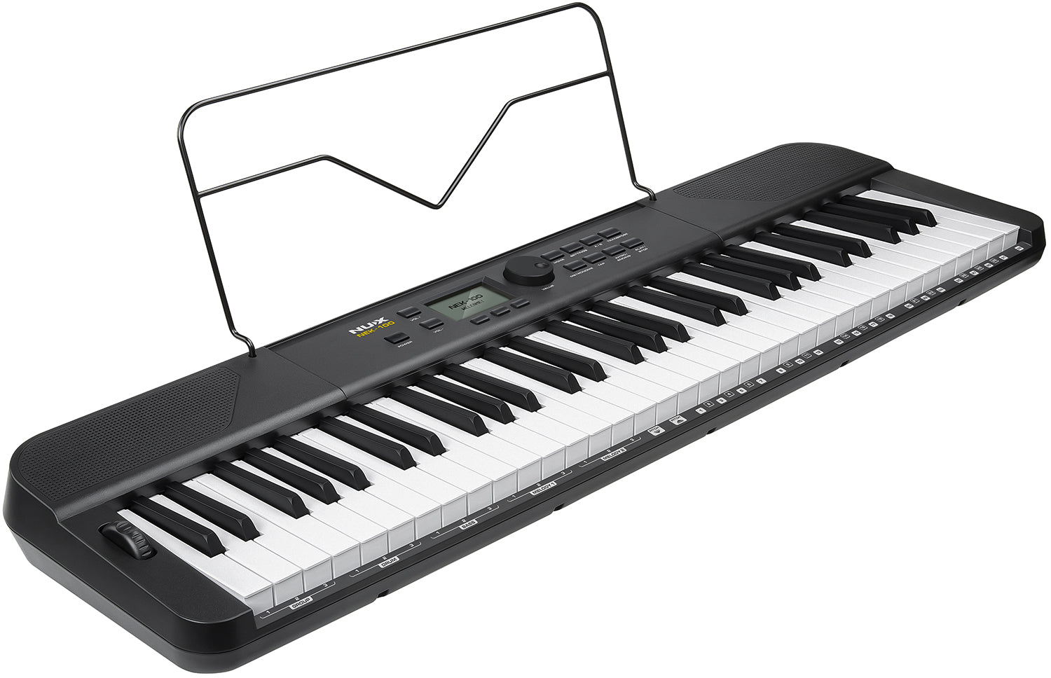 NEK-100 brings together the advanced technology and expertise of NU-X to produce a comprehensive and convenient keyboard for stage, home and studio. Powered from its internal rechargeable battery or the included 12V adaptor, this instrument is compact and lightweight, whilst offering a multitude of sounds, styles, effects and accompaniment options. Control layout is simple and intuitive, providing quick access to all settings and functions, with options for transpose, split or layered keyboard and touch response. 100 internal demo songs and 100 rhythm styles are available to play along to, with functions for auto accompaniment and single-finger chords. An additional Live mode offers 20 flavours of music phrases that can be launched from the upper 32 keys and toggled with normal patch sounds for standard right hand playing. USB type-C MIDI connection appoints the NEK-100 as a controller or sound module within a DAW software studio and a further USB-C is provided for the optional NBT-1 Bluetooth® adaptor. Sustain pedal input, aux in, headphones out and line output complete the connection panel at the rear. Overall, NEK-100 hides a full arsenal of player options in a very portable and convenient package.