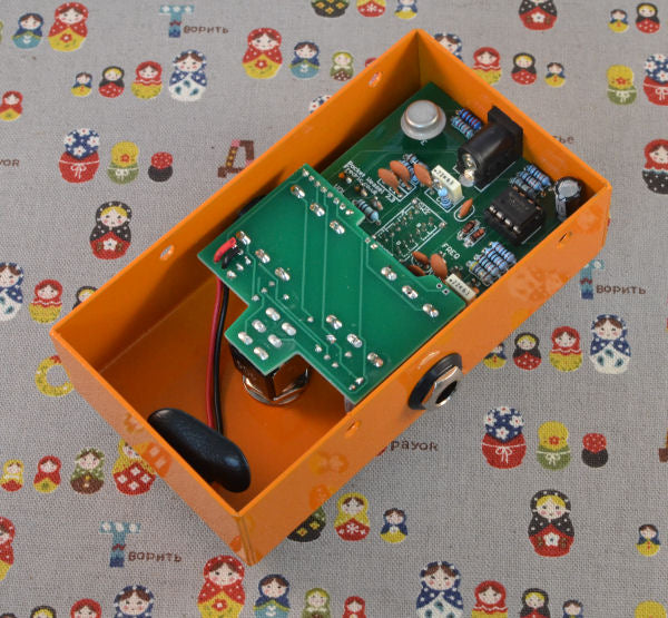 The Pocket Weasel is an original fuzzbox with a highly distinctive wah-like tone control. I took the idea of the Harmonic Energizer with added fuzz combo that we build as 'Do the Weasel Stomp' and used a simpler workalike circuit. The frequency range has been broadened so it goes from a deep bass boost to ear-shredding treble, with vocal wah-like sounds in between. A Germanium transistor gain stage has been added to give the fuzz in the Pocket Weasel a rougher edge.