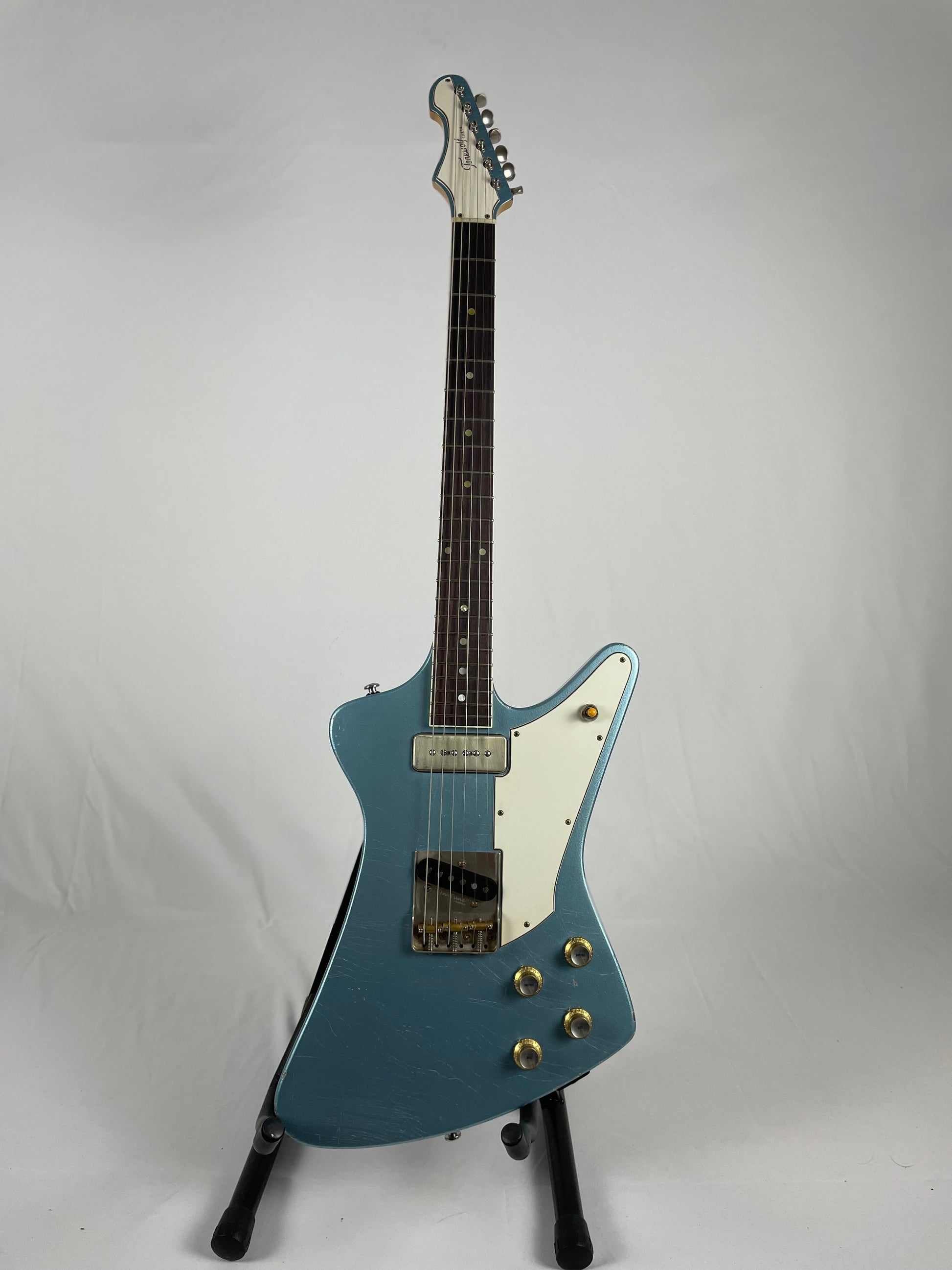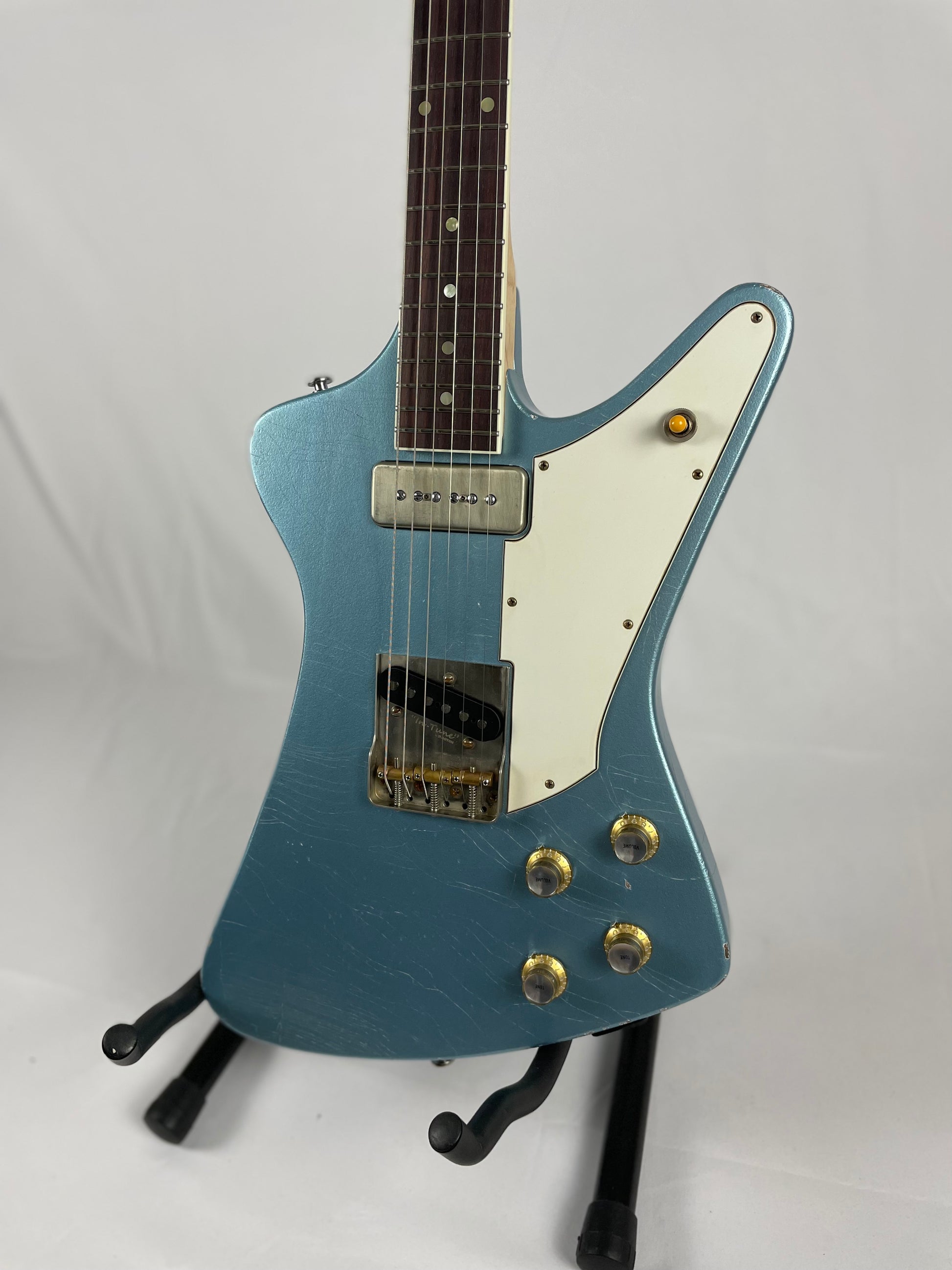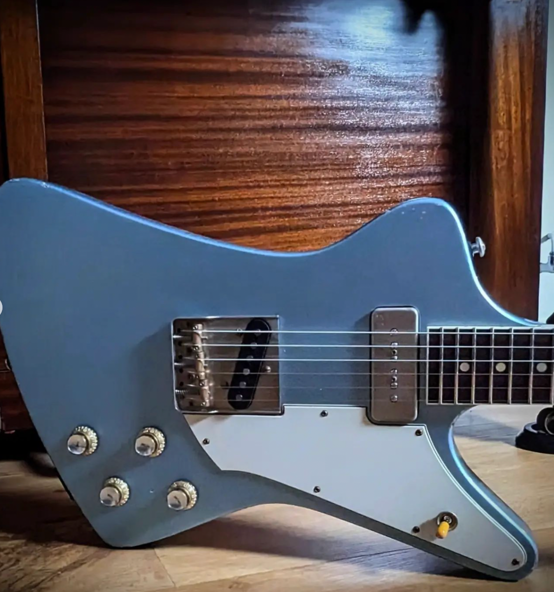 Adding the P90, three way toggle, separate volume and tone for each pickup and a Firebird/Explorer hybrid body you have the perfect blend of Fender and Gibson influence.